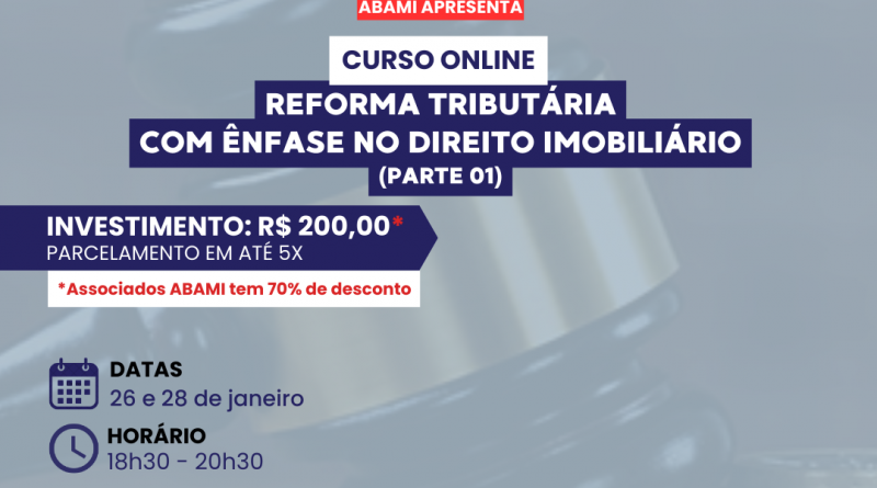 Link para inscrições: https://www.sympla.com.br/evento-online/reforma-tributaria-com-enfase-no-direito-imobiliario-parte-01