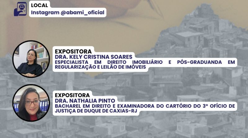 Tema: REURB E SEUS OBSTÁCULOS REGISTRAIS Comissão de Estudos em Regularização Fundiária Dia: 22/12/2025 Hora: 20h Local: @abami_oficial Patrocínio: O2 Seguros