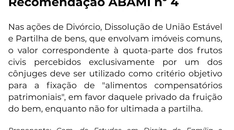 Proponente: Comissão de Estudos em Direito de Família e Sucessões da ABAMI, por sua Presidente Marcela de Lemos Rodrigues Aprovação